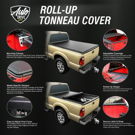 Walmart's Auto Drive soft rollup truck bed covers offer great protection for your gear at an everyday low price. All covers have been tested for fitment and proven durable in all weather conditions, backed by Walmart's 90 day return policy. Each truck bed cover uses UV-resistant vinyl & heavy-duty latching to provide a sleek and tight appearance. Carrying large cargo? Roll up truck bed tonneau covers allow full access to your truck bed within seconds. All Auto Drive tonneau covers fit specific to your vehicle's year, make, model, and bed length.
