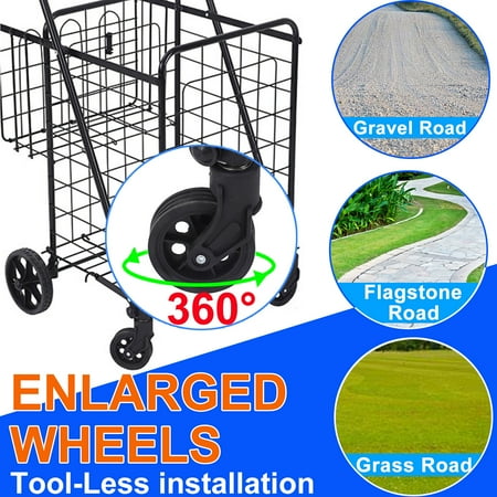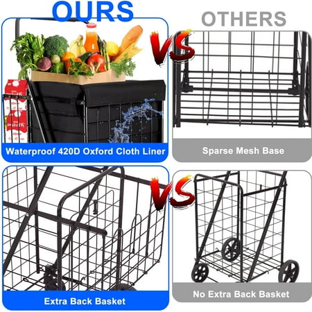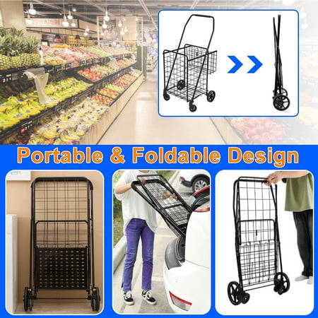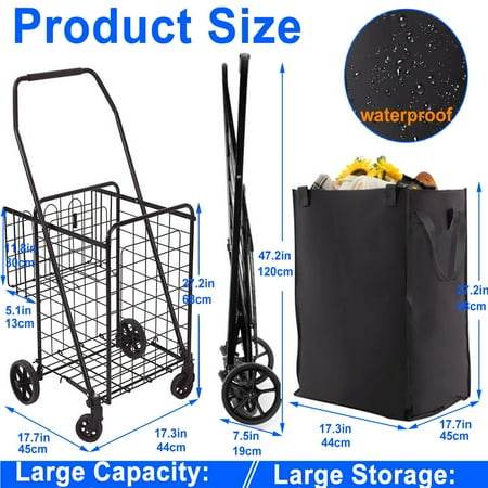 Folding Shopping Cart, Heavy Duty Grocery Cart with Removable Basket, 360° Rolling Laundry Cart & Lightweight Trolley for Shopping, Grocery, Laundry, Supermarket, Camping, Outdoor, Beach 【Strict Quality Control】Utility Carts are manufactured with strict quality control standards. Each Utility Cart and its components undergo extensive testing for optimal performance and to pass laboratory performance tests. All of this is just to give you a better shopping experience