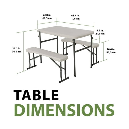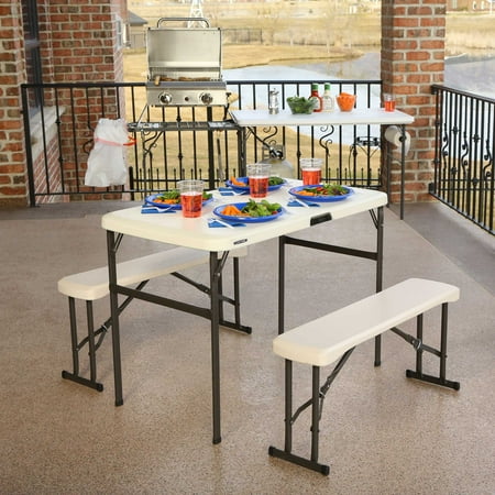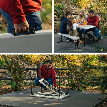 No matter where the road takes you, you need all the right amenities to make your trip comfortable. Whether you’re setting up camp, having a barbecue at the park, or meeting up with friends and family for a fun day outside, the Lifetime Folding Picnic Table with Benches features a compact design you can easily pack in your trunk for use whenever convenient. This set is UV-protected and weather resistant to provide excellent protection from the elements. The picnic table and bench are stain resistant making them easy to clean and minimizing the upkeep. Independent benches attach to the bottom of the table and the set folds to a flat package ideal for transport and storage. The Lifetime Folding Picnic Table with Benches is the perfect set to spend time outside, building memories with the people you love.