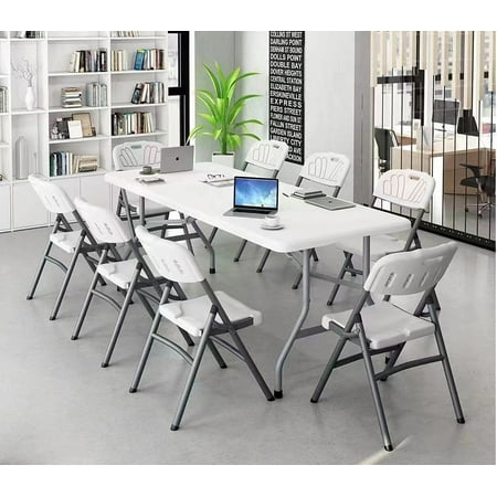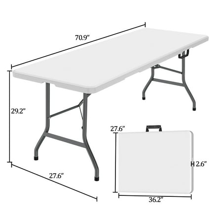 Leumius 6 foot folding table are perfect for indoor and outdoor use. After folding, it takes up very little space and does not require assembly, which greatly simplifies your life. It is designed to have enough space to accommodate up to 8 people. You can use it as a desk, game table, dining table, picnic table, party table, outdoor folding table, etc. It is very suitable for parties, weddings, homes, offices and other occasions~