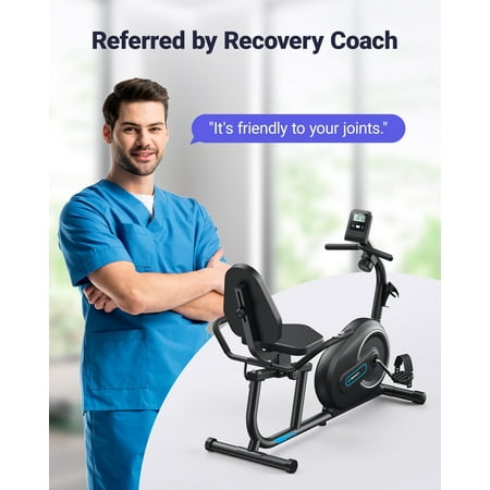 MERACH is committed to helping customers gain health through exercise. We specially designed this S08 low-impact recumbent exercise bike for the middle-aged,the elderly and the injured people. It is affordable and versatile. It not only has 8 levels of resistance and a clear digital display that allows you to clearly see the real-time exercise situation, speed, distance and calories, etc, but also comes with a large and comfortable ergonomic adjustable seat(with backrest), which can better support your hips and back, ensures your correct posture while providing the required comfort. In addition, the S08 recumbent bike also has heart rate tracking and Free MERACH APP support. Join MERACH to achieve your fitness goals and experience the benefits of regular exercise.