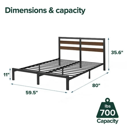The Zinus Shen Bamboo & Metal Platform Bed Frame with Headboard brings a natural touch to your bedroom with its beautiful bamboo headboard, adding warmth and style to any space. Its low-profile design is perfect for minimalists or small rooms, giving a modern look that doesn’t take up too much space. The sturdy metal frame and bamboo accents offer lasting support for a restful, quiet sleep. Easy to assemble and affordably priced, this bed frame combines elegance, durability, and practicality in one. Size: 81 in x 60 in x 35.6 in. WT-FBOBH5ZC-10Q. Age Group: Adult, Universal.