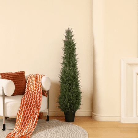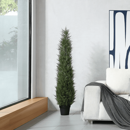 Looking for an easy way to bring some natural charm into your home or office? Look no further than our artificial 5ft cedar tree! Featuring a lifelike design and a charming bent trunk, this tree is the perfect way to add a touch of greenery to any space. Best of all, it requires no maintenance and won't wilt or die, so you can enjoy its beauty all year round. Whether you're decorating your home, office or shop, this 5ft cedar tree is sure to bring a touch of nature-inspired elegance to any room. So why wait? Order yours today and start enjoying the beauty of the great outdoors without ever having to leave your home! Assembled_product_weight: 20 lb. Plant in Black Pot