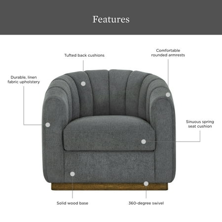 Introducing the Better Homes & Gardens Lillian Swivel Accent Chair, a unique piece that offers the perfect blend of style and comfort. The 360-degree rotation of this modern swivel chair enhances mobility while improving posture, allowing you to face any direction while maintaining good posture and spinal alignment — perfect for group conversations. Meanwhile, a solid wood construction means you can enjoy it with confidence that it will last. The soft boucle fabric of this charcoal chair is as elegant as it is inviting, and the barrel-style back and generous padding make lounging sessions feel like sitting on a cloud. For family movie nights, quiet reading afternoons, and more, this swivel accent chair is the epitome of chic comfort and will elevate your living space.