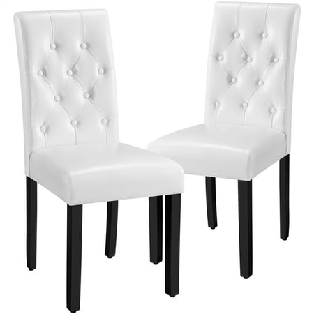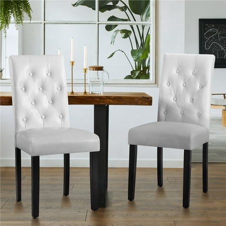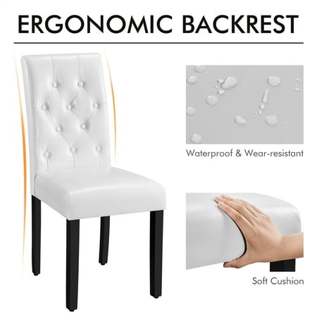 This set of dining chairs is constructed of strong wooden frame with high quality rubber wood legs, elastic soft foam, durable and waterproof PVC leather. Filled with more high-density foam in the seats and backrests will not let you feel tired after long-time sitting. The front legs are designed with adjustable feet caps to keep the chairs height balance. Modern and clean style will correspond with any space you intend it for, lobbies, meetings, hotels, restaurants, banquets and more.