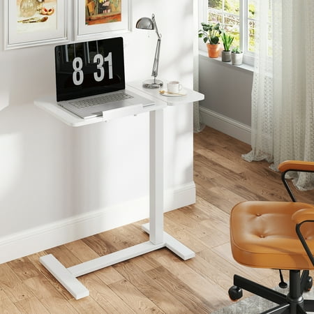 GIANNA Adjustable Overbed Table with Wheels, Mobile Rolling Laptop Desk, Tilting Bedside Table for Laptop, Bed, Sofa, and Office Use, White