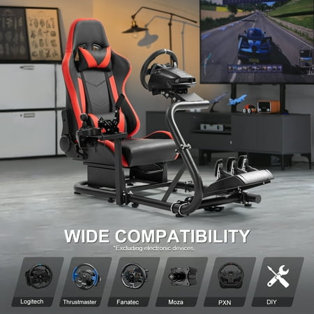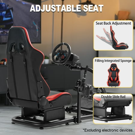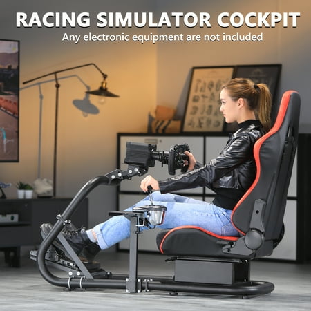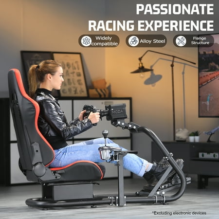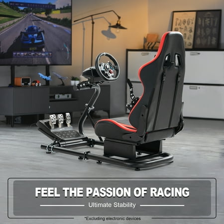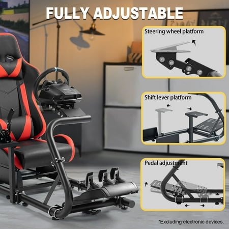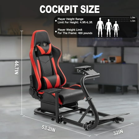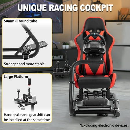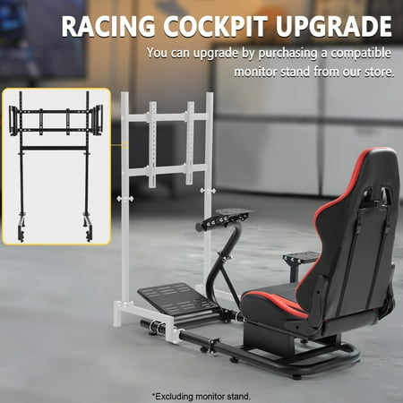 PLEASE NOTE: This product is large so the racing stand and seat will be shipped in two packages. Please don't worry, receive one parcel and the other parcel is on its way. Brand Introduction Marada has its own designers and factory, we want to provide high quality racing game stands to give you an enjoyable racing experience. What makes our product unique? We will also provide you with a quick response while guaranteeing the quality of our products. Your needs and opinions will be listened to carefully. In addition, we are always active in developing new products. Our Services 30-Day Free Returns 24/7 Professional Customer Service Product Description Multi-Stage Steering Wheel Angle Adjustment Dual-segment design can fully meet the individual needs of racers. More comfortable grasp of the steering wheel. Makes winning races easier! Adjust Pedal Angle At Will The pedals have 3 positions of angle adjustment. Racers can make any adjustment according to their needs. Supports Multi-Faceted Adjustment Of The Shift Lever The Super Simulator Cockpit not only supports left or right hand drive. Only Providing High Quality Round Tubes Marada is designed with extra thick and extra large diameter round tubes, just to give the racer a stronger sense of competition. Suitable For All Kinds Of Racers Support 400LBS carrying capacity. We welcome every racer to try to use it. It is our aim to provide more user-friendly Simulator Cockpit for our customers. Real Race Racing Chair With a sense of impact design and ergonomic neck pillow and lumbar pillow. Not only make the racing more realistic. More amazing is almost 180 ° angle adjustment, so that the rest more fully. Handbrake, steering wheel, pedals, shifter not included.