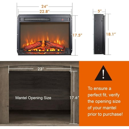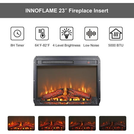 The Innoflame 23-inch Electric Fireplace Insert will be a cutting-edge addition to your home decor that combines modern design with advanced functionality. This electric fireplace was different from the traditional fireplace, without the need for gas hookups or vents. Experience the most realistic flame effect with the log set, dancing flame and 4 flame brightness. The 100% LED technology not only saves energy but also provides a stunning visual display that enhances any space. This fireplace isn't just for show—it's a powerful heater too. With a 1400-watt thermostat and 5,000 BTU output, it efficiently warms up your room while adding ambiance. Simply plug it in to a 120v outlet or connect it directly it the existing wiring in your wall. Whether you're lounging in the living room, unwinding in the bedroom, or entertaining guests in the family room, this fireplace creates a cozy atmosphere all year round. Safety is a huge priority, which is why this fireplace features overheat protection features for peace of mind during operation.