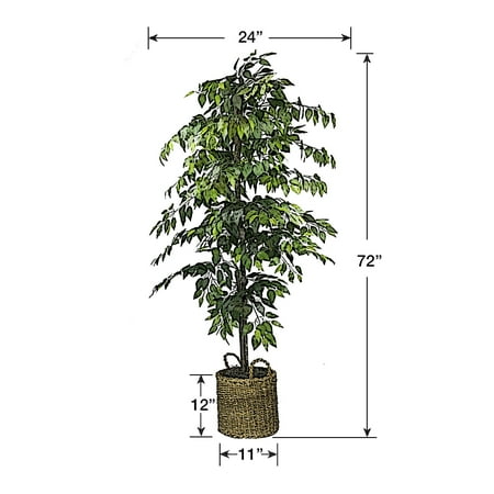 This 6 ft artificial ficus tree is a top choice for shoppers searching for a tall fake tree or faux indoor tree for home décor. Upgrade your interior space with this LCG Sales artificial 72" in height Ficus Tree in Handwoven Rattan Basket. Our designers and expert craftsmen have teamed-up yet again to create another major hit. We present a 72-inch, yes a full 6 foot tall, Ficus tree in a marvelous wicker rattan basket and has a 24 inch diameter span. Significant precision has gone into carefully producing each delicately engineered variegated green Ficus leaf while being equally as concerned about its ability to withstand the “ooohs” and “aaaaahs” the Ficus tree will receive in your home or office. The basket has handles to make re-arranging easy. Est. weight is 10 lb. Recommended for indoor use only.