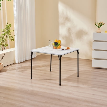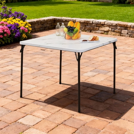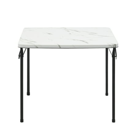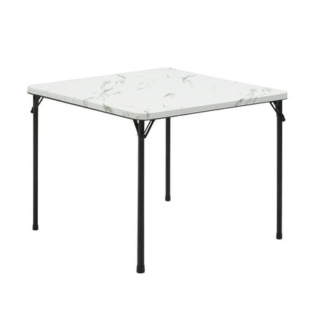 Provide all of the table space that you need in all kinds of settings with the Mainstays 34inch Resin Plastic Card Table. It's great for everyday use both indoor and outdoor, as a serving table, craft supply table, outdoor meal table, or for whatever purposes you may need. Constructed with sturdy steel tube and plastic surface that is easy to care for, just wipe down with a damp cloth and it will look as good as new! Plus, you won't need to worry about clutter, this card table can be folded up completely for easy storage and transportation. Best of all, it is big enough for four people to play games, make crafts or share a meal. Be prepared for whatever may come your way with the Mainstays 34inch Resin Plastic Card Table!