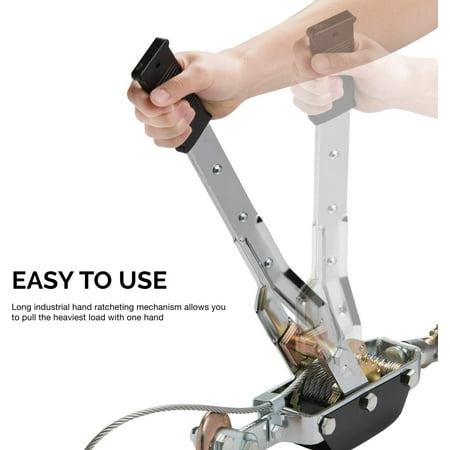 NEIKO presents the 02256A Heavy Duty Manual Come Along Cable Puller. This comealong manual winch is capable of pulling ten thousand pounds. Convenient and portable enough to use in almost every situation, small enough to carry with one hand and light weight so you can fit it in your trunk. Pull large loads and vehicles of whatever you are stuck in. You can also use them for stretching fences, lifting objects, and lowering objects. Some more advanced uses are also pulling joints together, pulling frame of a new construction together during its raising, or straightening heavy panels while putting them in place. Works in the industrial and construction fields, on boats and ships. With its long hand operated ratchet lever winch gets all the leverage you need.
