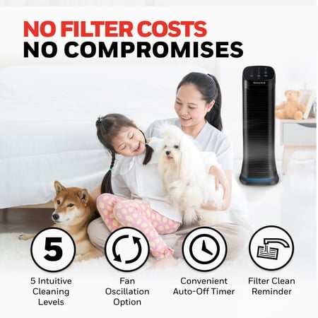 The Honeywell AirGenius 5 Air Purifier is a powerful and efficient air purifier for large rooms, helping to capture up to 99.9% of microscopic airborne particles, including dust, pollen, pet dander, dust mite debris, and smoke.* Ideal for large rooms up to 250 sq. ft., this quiet air purifier for home circulates air up to 4.8 times per hour to deliver cleaner, fresher air — especially helpful for homes with pets, allergens, or stale air. Designed with a washable permanent ifD® filter and washable foam pre-filter, this low-maintenance air purifier eliminates the need for replacement filters, saving you time and money.*** It features five air cleaning levels, including Sleep, Germ, General Clean, Allergen, and Max, as well as user-friendly functions like a floor accent light, oscillation, and an auto-off timer with 2, 4, 6, 8, 10, and 12-hour options. This air purifier is AHAM Verifide with a high smoke CADR. Whether you’re looking for a pet air purifier, a filterless air purifier alternative, or a washable filter air cleaner for everyday use, the Honeywell AirGenius 5 is a smart choice for year-round comfort and wellness.