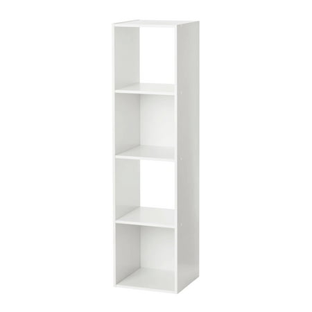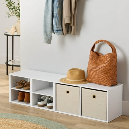 The Mainstays 4-Cube Vertical Storage Organizer features four compartments perfectly sized for storing and displaying office supplies, books, clothes, craft supplies, photos, collectibles and so much more! This sturdy bookcase can stand vertically or horizontally to best suit your needs and space. They are compatible with Mainstays 10.5" x 10.5" collapsible storage bins and cube inserts (sold separately) and available in multiple finishes. Two open back cube shelves make managing cords and cables easy, while two closed back shelves help keep items securely housed. This functional and stylish cube shelving system is the ideal home storage solution for your living room, family room, home office, playroom, closets and more.