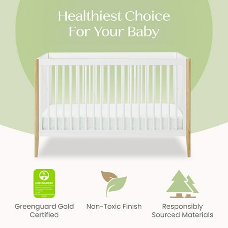 The Casey 4-in-1 Convertible Baby Crib by Delta Children will instantly elevate your nursery with its mid-century modern style. Clean lines, playful round spindles and cylindrical posts define this beautiful crib. Built to grow with your child, the Casey Crib features an adjustable height mattress that can be lowered as baby begins to sit or stand, plus it converts from a crib to a toddler bed, daybed and sofa. Pair this crib with other pieces in the Casey Collection for a coordinated look. Delta Children was founded around the idea of making safe, high-quality cribs affordable for all families. That's why all Delta Children cribs are JPMA certified, and are tested above and beyond industry standards.