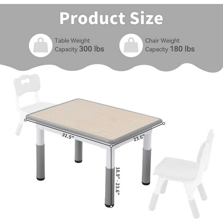 Adjustable Kids Table, Arts and Crafts Child Table with Graffiti Desktop, 7 Level Height Adjustable Children Table for Ages 3-8, Easy to Wipe Toddler Desk for Classrooms/Daycares/Homes
