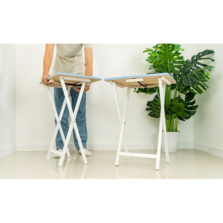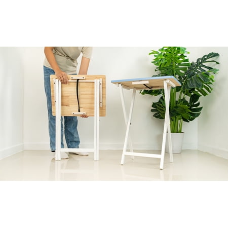 Add everyday convenience and functionality to your home with the Mainstays Folding TV Tray Table Set of 2. Crafted from durable rubberwood, each tray provides a sturdy and stable surface for meals, snacks, laptops, or crafts. Measuring 19" L x 14.5" W x 26" H, each table is lightweight at just 7.5 lbs, yet strong enough to support up to 25 lbs. The folding design allows for quick setup and compact storage when not in use, making it ideal for small spaces, apartments, dorms, or family rooms. Whether you’re working from home or enjoying a casual dinner in front of the TV, this versatile set offers a simple, space-saving solution that blends seamlessly with any indoor décor.