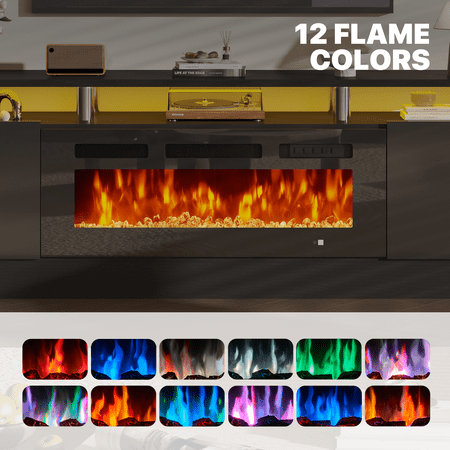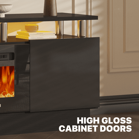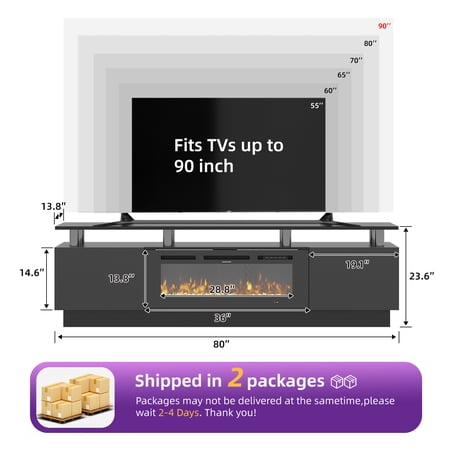 BaPiPro 80" Electric Fireplace TV Stand – Fits TVs Up to 90"! 36" realistic flame adds cozy ambiance. This black entertainment center has LED lights, storage cabinets, and works as a modern media console for living rooms. Sturdy design holds your TV securely. Enjoy warmth + stylish decor—perfect for family nights. Easy to use, blends with any modern space.