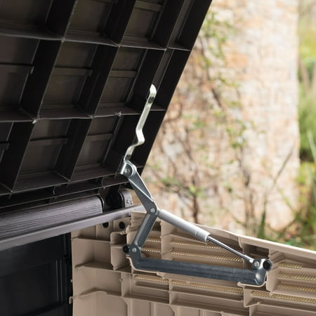 If you’re looking for storage that’s built with features that make your life easier, the Keter Store-It-Out MIDI is the answer. Durable and weather resistant for many years of maintenance-free use, it also comes with hydraulic pistons that hold the top open and a special bin-opening kit that lets you open your trash bins just by lifting the lid of the unit - perfect when you only have one free hand. With a full 30 cu. ft. of space, its ventilation panels promote airflow. The unit can be locked to keep your things safe, and a built-in floor panel keeps them clean and dry. It even has a built-in support for a shelf (shelf not included) to make the most of your space. It’s easy to take home and assemble, too. Because easy is what the Store-It-Out MIDI is a about.