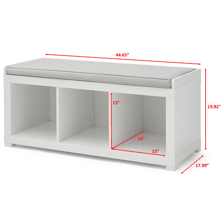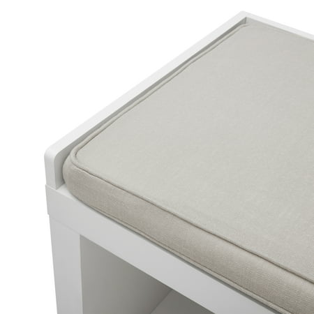 Bring home the Better Homes and Gardens 3-Cube Organizer Bench to add storage, seating, and a gorgeous style almost anywhere. The furniture piece features three 13-inch by 13-inch by 18-inch cube storage compartments capable of supporting up to 30 pounds each that are perfect for books, magazines, electronic components, toys and games, and so much more. This stylish bench has a soft top cushion wrapped in neutral 100-percent polyester material with an 80-percent polyurethane foam and 20-percent polyester fiber batting to provide long-lasting durability and comfort. It makes a welcoming addition and bold statement piece in hallways, dining rooms, breakfast rooms, underneath windows, living rooms, dens, and just about any room where organization is needed. Comfort and organization in equal measures is brought to your home with this Better Homes and Gardens 3-Cube Organizer Bench. From book cases to TV stands, Better Homes and Gardens furniture is designed to help you organize your home. Look for a new dresser for your clothes, display your favorite books with a bookcase or create your home office with a desk and a cube organizer. You'll also find kitchen and dining tables and chairs, living room furniture and kid s furniture.