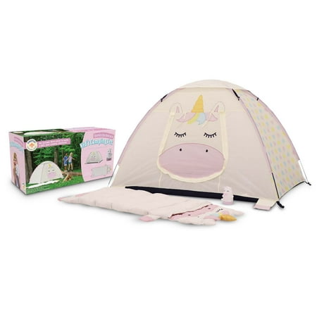 The campsite just got a whole lot brighter with the Firefly! Outdoor Gear Sparkle the Unicorn Kid's Camping Combo Pack. The set includes a tent, sleeping bag & lantern which is perfect for any indoor or outdoor camping adventure. The sleeping bag is made with soft and breathable fabric. The colorful character tent is perfect for your child’s next campout or backyard adventure. This tent is the perfect size for two kids and is rated for outdoor use making it the perfect tent for any occasion. The lantern has a durable soft plastic globe and lifetime LEDs that will withstand even the roughest adventures. Step up your next outdoor adventure with the Firefly! Outdoor Gear Sparkle the Unicorn Combo. Check out all that Firefly! Outdoor Gear has to offer and collect the whole set!