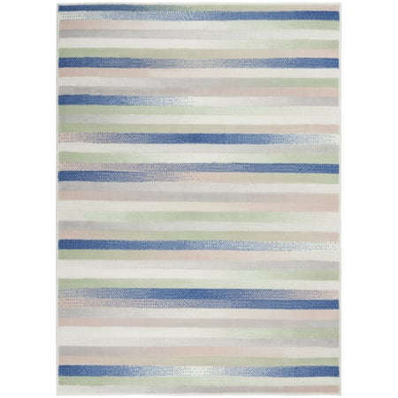 In true bohemian style, the Whimsicle Collection boasts an eclectic mix of tribal inspired, geometric, and classic floral motifs. Purposefully distressed vintage patinas in neutral, of-the-moment palettes make any Whimsicle Collection rug a versatile foundation for any style of decor. These expertly crafted low-profile area rugs are machine made of soft polyester for a seamless fit in your living room, bedroom, dining room, or home office. This modern area rug from the Whimsicle Collection adds a unique touch to your surroundings. An artistically inspired half tone technique in ivory multicolor creates a sophisticated foundation for contemporary styles of decor. Machine made of soft polyester with a low profile for a seamless fit under your sofa, dining room table, or near areas that need door clearance.
