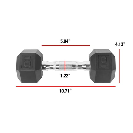 The CAP barbell coated hex dumbbells feature a protective coating, diamond knurling, and a steel handle to provide long-Lasting performance. The benefits of dumbbell exercises include muscle building, improving core strength, boosting balance, promoting better bone health, increasing energy levels, enhancing overall mood and more. Dumbbells are perfect for isolations, full body, functional and hit workouts. Dumbbells are used to exercise all major muscle groups, including arms, chest, back, abs, legs and core. Target individual muscles or get a full body workout by incorporating these dumbbells into your fitness regimen. The CAP coated hex dumbbell heads are made from sat a48 class 20 grey iron with a durable coating and joined together by a solid 1018 cold rolled steel chromed handle, providing a strong, durable product. Sold as a pair.