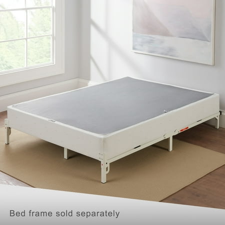 This Mainstays Quad-Fold Folding Box Spring is a revolutionary way to enhance your bedroom experience. Once you have it in your bedroom, simply unfold it by gently pushing down and zipping up the coverlet. It functions exactly like a normal box spring, provides a sturdy platform for any Queen-size mattress and made of powder-coated steel to naturally resist bed bugs and mold. The coverlet is easily removable, which makes it easy to clean. Coverlet has non-slip fabric to help prevent the mattress from sliding while on the box spring. This innovative box spring makes storage and transport easy with its quad-fold metal bed frame design that allows the box spring to fold in half and flatten. Perfect for any child, teen, master, or guest bedroom.