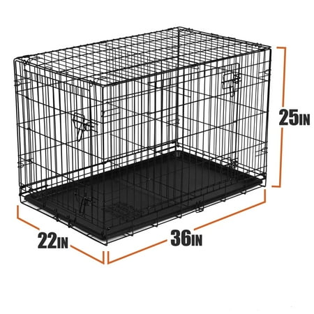 Keep your pet secure with the Vibrant Life Double-Door Folding Dog Crate with Divider. It features a heavy-duty, non-corrosive steel frame and a 36-inch double door with locking latches to prevent your animal from escaping. The open wire construction offers visibility and ventilation for your furry friend while the removable floor provides a smooth and comfortable surface for your dog to enjoy food, water, toys, and treats on while inside. When not in use, it folds flat for compact storage and transport. This kennel can accommodate large dogs up to 70 pounds and is suitable for house training and creating a safe, den-like space for your dog. Keep your dog safe while away with the Vibrant Life Double-Door Folding Dog Crate with Divider.Help your pets live the Vibrant Life! Our products are specially crafted with one goal in mind, seeing your pet at its very best. With a variety of offerings designed to keep animals healthy, happy and energized, Vibrant Life stands out as the brand that truly puts your pet first.