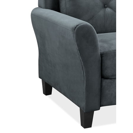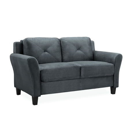 The Taryn Loveseat is the two seat option of this stationary set designed to fit your space and style. Built for lasting quality, the Taryn combines form, function and ease of assembly designed for the eclectic life. The design lines and scale of the Taryn Loveseat brings a modern touch to spaces large and small with versatile elegance. High density foam cushions with rolled arms and beautifully button tufted back hug your body with comfort and is poised to transform any room into your favorite place to let go of the day and relax in pure bliss. Combining Dark Grey premium microfiber upholstered fabric and solid eucalyptus wooden frame, this durable plush loveseat invites you to rest in the knowledge of years of enjoyment to come.