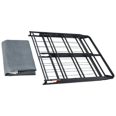 Durably support your mattress with the superior design and construction of Mainstays Fold-in-Half Metal Box Spring in Black. Available in Twin, Full, Queen and King this box spring features reliable and sturdy metal fabrication. This resilient mattress box spring boasts heavy gauge premium steel bars throughout to provide comfortable, trusted support for your mattress. Easily fold away into a flat, compact size, ideal for easy storage and transport no matter where you go. The included coverlet easily fits onto the box spring and zips on for a secure fit and effortless cleaning when required. Mainstays 7.5" Half-Fold Metal Box Spring in Black Steel offers a modern and more durable solution to conventional wood and spring box springs, providing a naturally sanitary structure that is mold, and even bed bug resistant. Never fuss with your mattress moving out of place with the coverlet's non-slip surface, providing sturdy support and comfort while you sleep. Ultra easy to set up in your home, this Fold-in-Half Metal Box Spring from Mainstays requires zero assembly - just unfold, zip on the cover and you're ready to use. The Mainstays Fold-in-Half Metal Box Spring in Black is ideal for use in any room from bedrooms to dorms or guest rooms and is sure to provide you with a durable, clean and supported sleeping environment.
