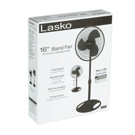 Cool down with the Lasko 16" Oscillating Pedestal Stand 3-Speed Fan. Pedestal fans are easy ways to handle hot, stagnant air, sending cool breezes wherever needed. The Lasko oscillating fan goes one step further with its oscillating head and flexible, tilt-back feature. The oscillating head directs a steady stream of cool air across an entire room; by adjusting the tilt-back feature, the fan blows air back up towards the ceiling, creating air circulation throughout the room with a gentle breeze that doesn't necessarily blast you in the face. Its 16" blades evenly distribute air regardless of where the fan is pointed. The Lasko pedestal fan has a rugged plastic build with a wide base for stability and an adjustable frame that extends from 34" to 47" for easy use in any sized room. It's designed for easy operation, with a 77" cord finished with a patented, fused safety plug. No-tool assembly allows for nearly effortless set up. It's covered under a one-year limited warranty.
