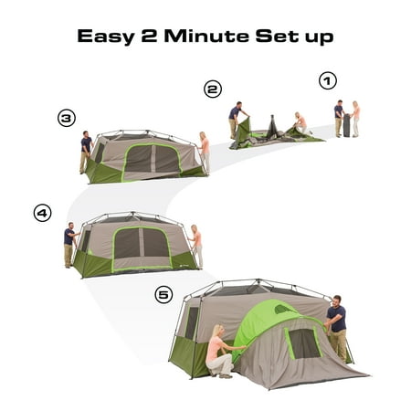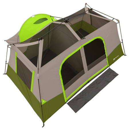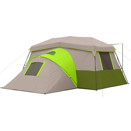 Gear up for your next outdoor adventure with the Ozark Trail 11-Person Instant Cabin with Private Room. It features an open cabin with an extra attached back room. It also features a large front awning for protected entry and has a 76" ceiling height for ample headroom. Use the family camping tent's included room divider and back room door to create three separate living spaces, or keep them open for panoramic views. It features six large windows and mesh ceiling for comfortable ventilation. Inside you will find a gear organizer to help you keep track of all your essential camping items. Easy to set up, this Ozark trail family cabin tent comfortably fits two queen airbeds or up to 11 campers (eight in main cabin plus three in private room) in sleeping bags on the floor. Take the Ozark Trail 11-Person Instant Cabin Tent with you on your next outdoor adventure.