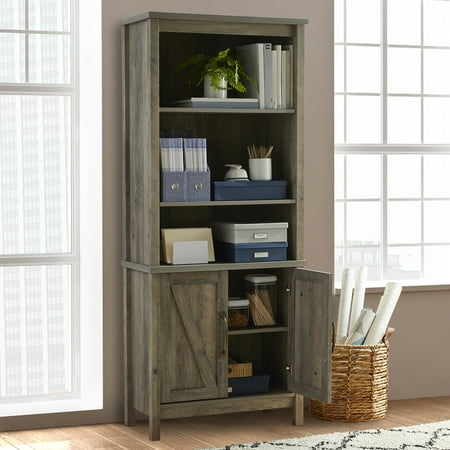 Style and storage all in one. Update the look of your home when you add the rustic-inspired style and functional design of this library bookcase with doors from the Better Homes and Gardens Modern Farmhouse collection. This library bookcase features three spacious shelves that are perfect for storing and displaying a variety of different items like your collection of novels, decorative plants, work binders, and framed photos of your family. These three shelves have the ability to adjust to different heights to create flexible storage for items of all shapes and sizes. Behind the two framed doors is a hidden storage area that is ideal for stowing away items like organizing bins, magazines, and anything else that you prefer not be seen. Its charming good looks and versatility make this library a great fit for any room in your home– the living room, your office, or in the dining room. Finished in Rustic Gray and detailed with attractive hardware, this stunning library bookcase is just what your home needs.