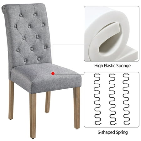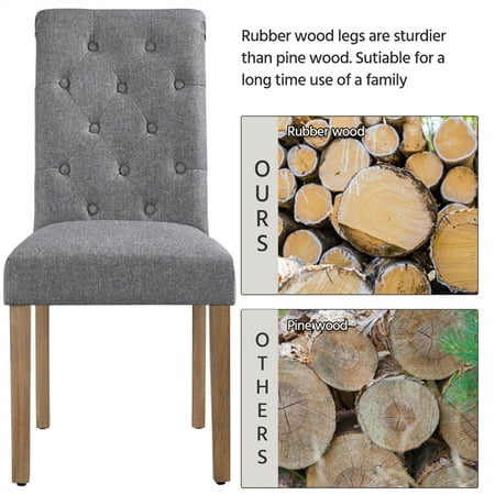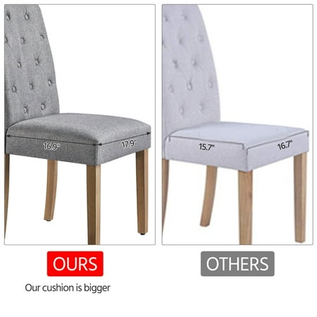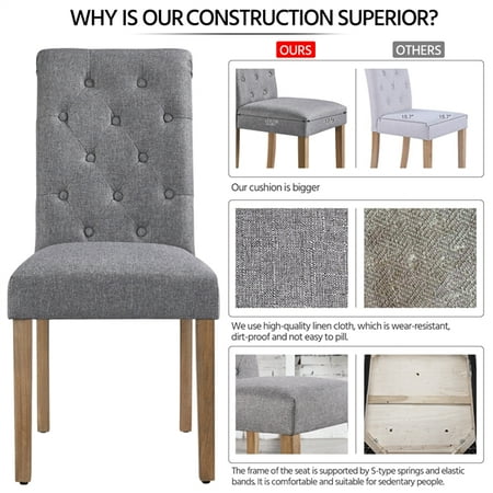 The upholstered dining chair is built to last, made of linen-look fabric stretched on a durable solid wood frame with thick cushion. The dining chair looks very fashionable, which can match any decor theme, perfect for home, restaurant, cafe and company. The seat and back are padded with high-density foam for great comfortable feeling and the overall wooden frame gives you strong support.