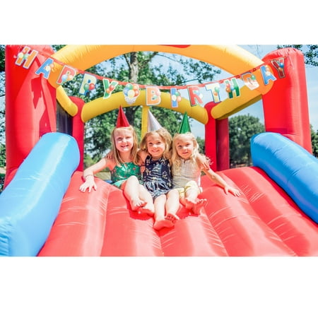 Kids will enjoy plenty of high-energy excitement while bouncing on this Little Tikes Jump 'n Slide Bouncer. This fantastic inflatable bounce house provides endless bouncing possibilities. It has tall, protective walls that surround a substantial play area to keep your kids safely contained inside. The wide slide on this kids’ inflatable bouncer comes with side rails that make for a fun exit. The Little Tikes bouncer comes with a blower, repair kit and a storage bag. It is simple to put up and take down each time your kids want to play. It is also optimal for parties. This helps promote kids playing outside and enjoying the outdoors. For parents, the Little Tikes Jump 'n Slide Bouncer is ideal because it is soft and safe.