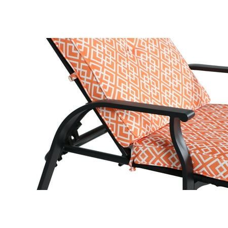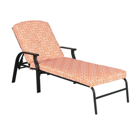 The Mainstays Belden Park Outdoor Chaise Lounge creates a wonderful place to relax on your deck, patio, porch, garden, and other outdoor areas. This comfy lounger is crafted of sturdy steel with a powder coated finish to resist corrosion, a button tufted back cushion and reclines to five positions and lays flat. Easily assembled with the included instructions, the Mainstays Belden Park Outdoor Chaise Lounge Outdoor Chaise Lounge is a great way to help transform your outdoor living area and is just one part of the entire Mainstays Belden Park Outdoor Chaise Lounge collection of outdoor furniture (other pieces sold separately). Available in Navy, Red, Tan, Grey, Blue/White, Gray/White, and Orange.