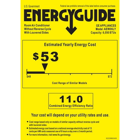 Cool down on a hot summer day with the GE 6,000 BTU Window AC with Remote. This product delivers 6,000 BTUs and cools down small rooms up to 250 square feet. It features 3 cooling speeds and 3 fan speeds for customizable comfort to your liking. The GE 6000 BTU air conditioner includes an easy mount window installation kit, which will allow you to setup the unit in no time. Additional features include a one touch lift-out filter for easy cleaning, an electronic thermostat, 24-hour on/off timer and remote control. The GE window air conditioner is used with a standard 115V outlet.