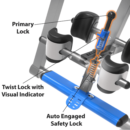 Built with heavy duty steel frame and supports users up to 300Lbs weight capacity, the Fitness Reality 690Xl triple safety locking inversion table comes with a patent pending triple safety ankle locking system which consists of a primary lock, a weight activated auto lock, and a visual lock indicator. The Fitness Reality 690Xl also comes with an adjustable headrest, a soft foam backrest providing comfortable support while inverting.