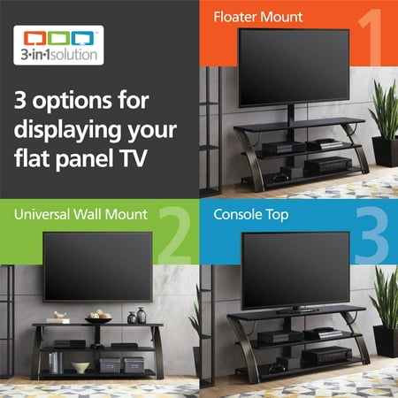 This Payton 3-in-1 TV Stand offers versatility and a patented design with three different options for displaying your flat screen. Choose from swivel mounted, wall-mounted and table-top displays. Create the perfect viewing angle with the swivel mount capabilities to pan 45 degrees left or right or keep a classic style with your TV on the tabletop. The Whalen 3-in-1 TV Stand can support most 65" flat panel TVs up to 135 lbs. so you can create the entertainment center just for you! This stand offers ample room for storing your media components, gaming systems and accessories. The sleek console has a contemporary design that goes well with any decor. Whether you choose to use the TV stand in your living room, game room, kid's room or any other area, this media center is perfect for any room in your home! From traditional to modern and all things in between, Whalen is sure to have a television stand to fit your needs.