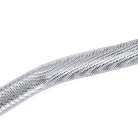 The CAP Barbell Chrome 47 Olympic Curl Bar is just the right piece of equipment to aid in the development of your arms, chest and back. This bar, also called the EZ curl bar because of the zig zag or wave in the bar, is an essential training tool that isolates and intensifies development of biceps, triceps and forearm muscles while decreasing discomfort to the elbows and wrists due to the curved design that provides several different grip widths and hand positions. The CAP Barbell Curl bar is made of solid steel with a high-polish chrome finish, rotating sleeves and knurled handgrips. This weight curl bar is designed to work with Olympic, two-inch plates, with a maximum weight capacity of 200 pounds. Please note: collars are not included.