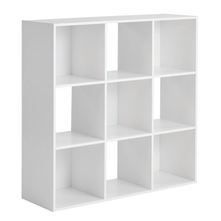 The Mainstays 9-Cube Storage Organizer features nine compartments perfectly sized for storing and displaying office supplies, books, clothes, craft supplies, photos, collectibles and so much more! Compatible with Mainstays 10.5-inch by 10.5-inch collapsible storage bins (sold separately) and available in multiple finishes. Four open-back cube shelves make managing cords and cables easy, while five closed-back shelves help keep items securely housed. Add an accent piece that is both functional and stylish to your living room, family room, home office, playroom, closet and more, with the Mainstays 9-Cube Organizer. Mainstays furniture offers an ideal solution for anyone who wants stylish, versatile home and office furnishings. With a variety of different furniture collections reflecting clean, modern style and simple forms that can fit in with nearly any style of decor, Mainstays furniture offers something for everyone. Look out for bedroom, lounge, office and storage furniture pieces in this category, including some items that require no tools for assembly.