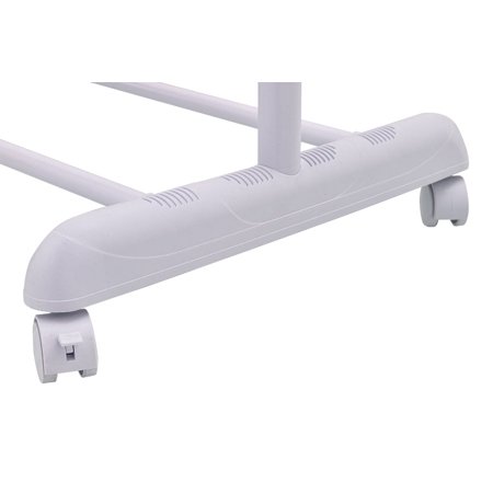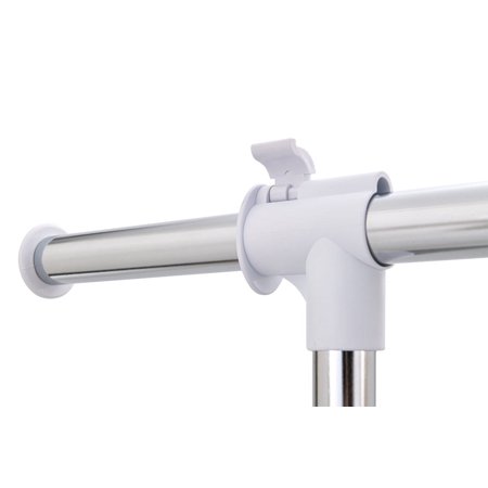 Get organized around the house with this durable and classic adjustable garment rack. With this product, you can hang your clothes with confidence. Chrome & White color for a sleek appearance, and it is easy to install and requires no tools. The innovative space-saving design maximizes your unused space. And, with easy height adjust-ability, your garments will fit, from long to short and easy to move casters, you can rest assured you are getting authentic Mainstays product. This garment rack easily stores all of your clothing and is great for everyday use.The bottom bars can even be used for shoe storage! Trust your garments to the adjustable durable rolling garment rack. Don't get yourself caught in a mess of garments. Assembled Product Size: 33.07-47.64W x 17.32D x 48.62-64.17H inch/84-121W x 44D x 123.5-163Hcm. Assembled Product Weight: 2.30kgs/5.06lbs.