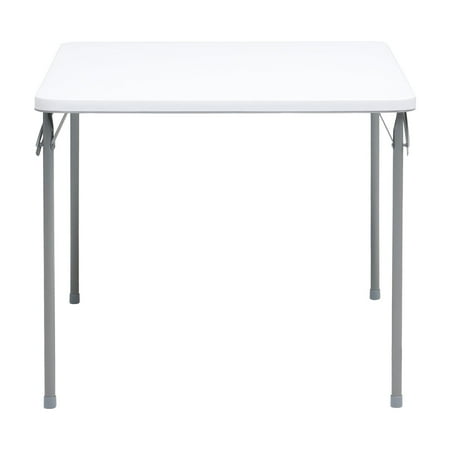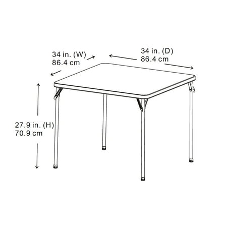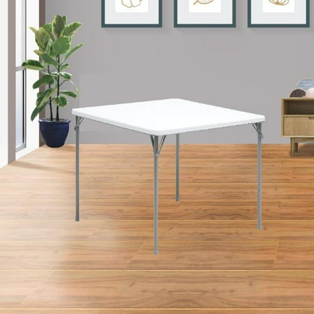 Provide all of the table space that you need in all kinds of settings with the Mainstays 34inch Resin Plastic Card Table White. It's great for everyday use both indoor and outdoor, as a serving table, craft supply table, outdoor meal table, or for whatever purposes you may need. Constructed with sturdy steel tube and plastic surface that is easy to care for, just wipe down with a damp cloth and it will look as good as new! Plus, you won't need to worry about clutter, this card table can be folded up completely for easy storage and transportation. Best of all, it is big enough for four people to play games, make crafts or share a meal. Be prepared for whatever may come your way with the Mainstays 34inch Resin Plastic Card Table White!