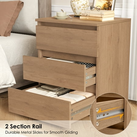 Homfa - Create a comfortable life! 3 Drawers Nightstand End Table This wood grain nightstand has three storage drawers, providing you with plenty of storage options. You can place the side table next to your sofa. The 3-drawer nightstand's minimalist square design won't be an eyesore anywhere, and its elegant look adds to the living room. This small nightstand can become a side table, sofa side table, coffee table, and so on. Explore more Homfa items