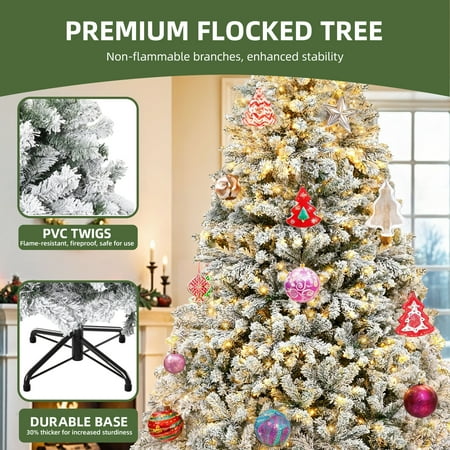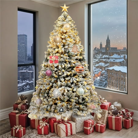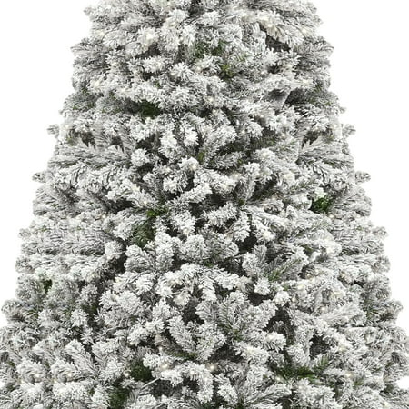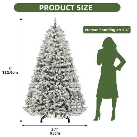 Product Description: Transform your space into a cozy winter wonderland with this 6ft prelit artificial snow flocked Christmas tree. Featuring 1000 full, flexible tips and 250 lights with 11 modes, it's ideal for displaying your holiday decor. Hinged branches and a foldable base ensure quick setup, while the sturdy iron stand provides lasting support. Comes with a remote and kraft paper for easy lighting control and cleanup. A festive, customizable centerpiece for any setting. Specifications: Size: 6 FT Color: White Flocked Material: Polyvinyl Chloride Product Dimensions: 37.2"D x 37.2"W x 72"H Item Weights: 16.71 Pounds Occasion :Christmas Special Feature: Remote Controlled, Flocked, Foldable, Prelit