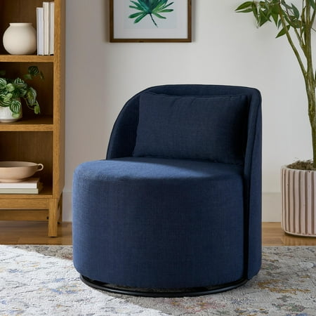The Better Homes & Gardens Juliet Modern Arch Swivel Chair is the ultimate blend of comfort, style, and functionality for your home. Crafted with a sturdy wood frame, this accent chair is designed to stand the test of time. The upholstered chair has a generously padded seat and 360-degree swivel base so you can effortlessly lounge and unwind in any direction you please. Designed with contemporary flair, the Juliet Arch Swivel Chair boasts a chic, arched backrest and plush, removable pillow for added comfort. Whether you're curling up with a book or entertaining guests, its durable fabric upholstery ensures both style and durability. Available in three versatile colors - navy, gray, and cream bouclé, this swivel living room chair effortlessly complements any living space.Transform your home into a haven of relaxation and style with the Better Homes & Gardens Juliet Arch Swivel Chair.