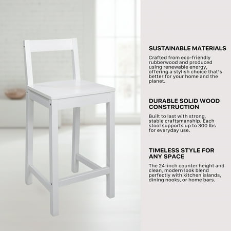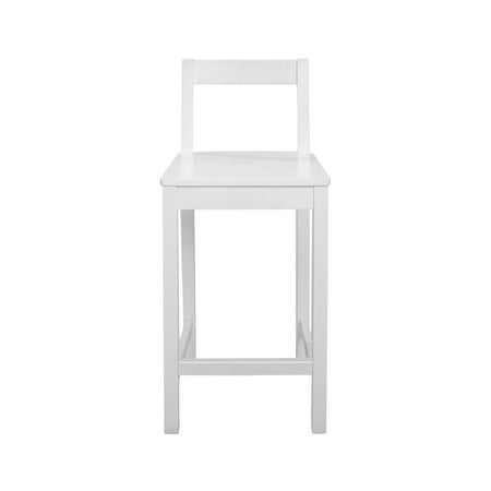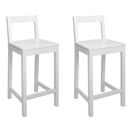 Spruce up your kitchen counter area with the Mainstays 24" Indoor Basic Barstool Set of 2. These stools are perfect for all occasions, whether pairing with a small dining space that you already have, adding seating to your countertop, or casual entertaining space. Constructed from sturdy, durable wood, this set of 2 counter stools feature comfortable, square with backrest, seats that stand 24 inches high, with a classic and modern design that fits in with any existing decor. With 4 well-balanced, square legs, along with 8 built-in bars for your feet, each stool can withstand up to 300 pounds. Good for eating, working, entertaining a few guests, or just sitting around, these stools are a great addition to that new bar, counter height table, or working area. Light assembly is required before you can use these bar stools, with all required hardware included. Make your kitchen or any dining space look great with the Mainstays 24" Indoor Basic Barstool Set of 2.