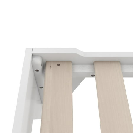 There's nothing more satisfying for a parent than seeing their children learn through exploration, but this type of developmental growth may be slower to achieve if your toddler is cooped up in a traditional toddler bed with restrictive high railings that separate them from their nursery environment. Championing freedom of movement, all within the bounds of safety, the Little Seeds Maverick Toddler Montessori Flip Bed embraces the Montessorian concept of nurturing independence. Adaptable to your child's level of comfort, its flippable floor bed to raised platform bed design enables your little one to safely maneuver in and out of bed without guidance or fear thanks to its low-profile height. Fully constructed from durable wood and beautifully styled in a neutral finish, the lightweight bed frame possesses smooth edges, and its protective mattress guard corners become secured legs when flipped over from a floor bed to a raised bed position. Better yet, the bed's preassembled wood slat base easily detaches and reattaches to accommodate either stance and completely supports your kid's toddler mattress (sold separately). And simple-to-connect joint blocks let you put this furniture piece together in under 10 minutes for fast assembly.