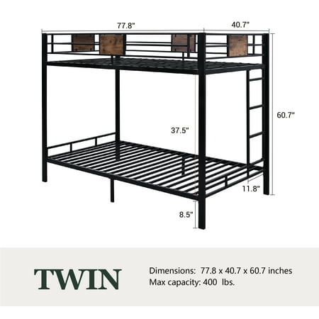 Amolife - Life is All About Enjoying Offered in Black color, our Amolife twin-size bunk beds are the perfect centerpieces for your bedroom. Mindfully made and exquisitely crafted, our collections will be a perfect foundation for your restful retreat. 13'' Full-length guardrail makes your sleep safer, no worry about falling down. The natural wood board combines the iron material well and could fit with any decorations, no matter whether it's modern or industrial. And if you're worried about the noise, we're so confident that there'll be no noise at all when you sleep on it, since we utilize the plastic buckle to stabilize the iron slats, offering you a whole night of sound sleep. Our Consideration: The upper bed is completely wrapped by the guardrail to ensure personal safety to the utmost extent. Screw holes are reserved on both sides to facilitate the installation of climbing ladders on either side. Relatively ample bed space (8.5") is convenient for storage and space-saving. A plastic buckle is used to stabilize the iron slats, with no noise while turning over.