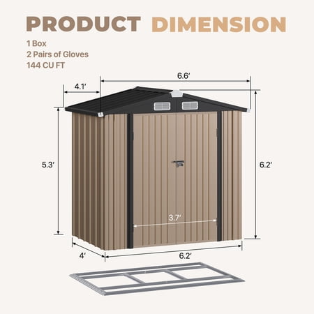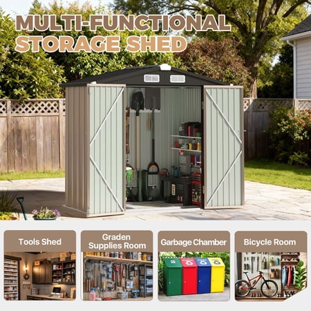 Feeling like your garage or backyard is a bit overcrowded? Need more storage space in your yard? Or looking for a place to store your kids' outdoor toys? Meet the BaPiPro heavy-duty galvanized steel outdoor storage shed — your stylish and space-smart storage solution. Boasting 144 cu.ft (22.6 sq ft) large storage space, this lockable outdoor shelter features double doors for easy access and vents for better ventilation. Perfect for all your yard tool storage, bike storage, and patio gear organization!